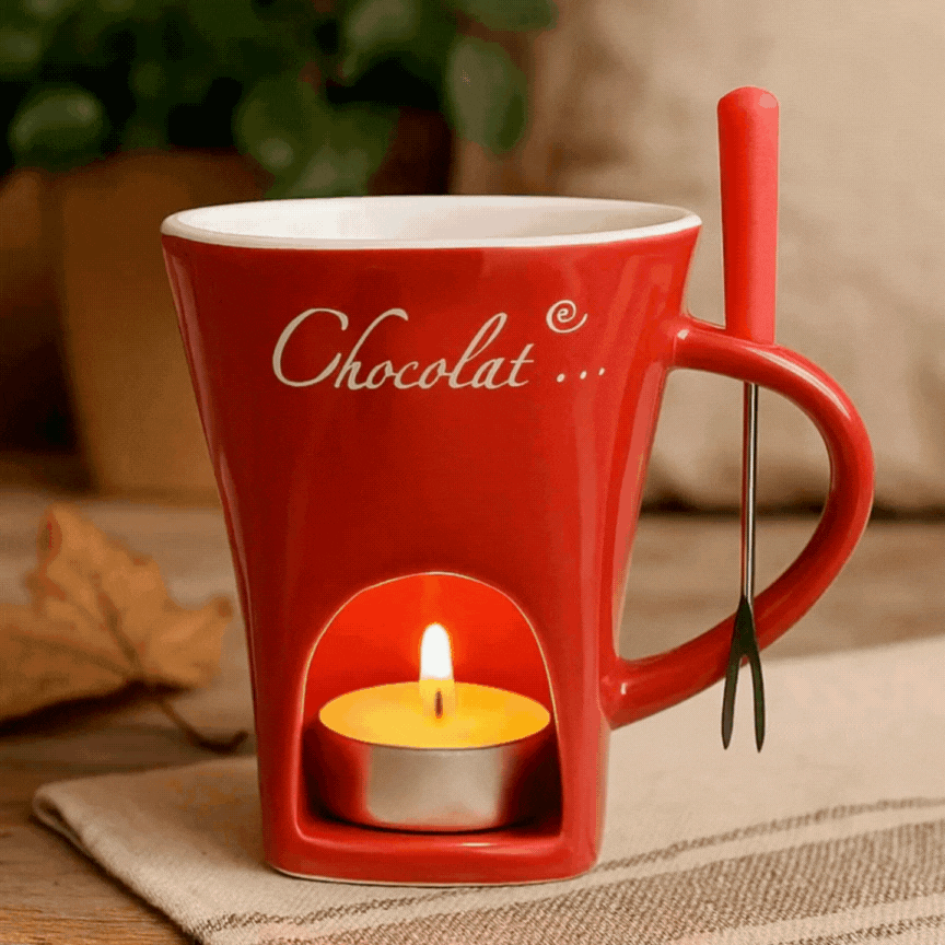 You can melt chocolate, caramel, or even cheese! It’s perfect for sweet or savory moments — just light the candle and enjoy.
